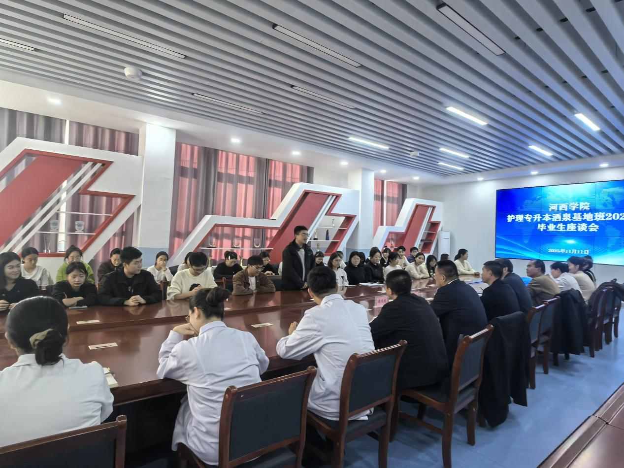 座谈会上,梁兆光书记一行与同学们进行了面对面深入交流,认真听取学生们在校期间的学习体验与生活感受,并围绕实习安排、就业方向与职业发展等学生普遍关心的问题进行了细致探讨。梁书记充分肯定了河西学院护理学“专升本”酒泉基地班同学积极向上的精神风貌。他强调,两校始终坚持以学生为本,致力于为同学们创造更优质的学习与实践条件,鼓励同学们明确职业目标,夯实专业基础,全面提升综合能力,为今后服务医疗卫生事业筑牢根基。